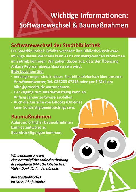 Seit 2015 hat die städtische Bibliothek im Dreiseithof Gröditz ihr Zuhause gefunden. Aus den einstigen Stallgebäuden entstand eine moderne Bibliothek, die mit einem breiten Angebot an Büchern und digitalen Medien begeistert. Als kultureller Treffpunkt im Dreiseithof ist die Bibliothek nicht mehr wegzudenken: Ob Lesungen, Spielenachmittage oder das monatliche Lesecafé – viele Leserinnen und Leser jeden Alters kommen hier zusammen, um zu entdecken, zu lachen und zu genießen.